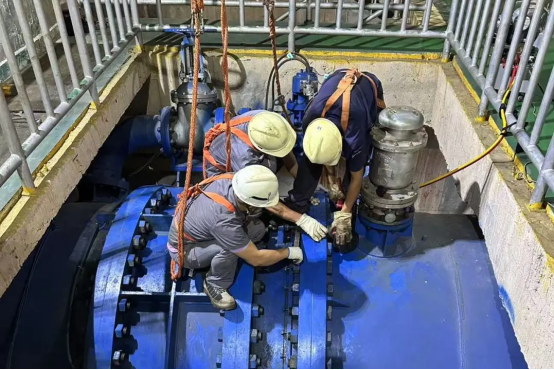 当地员工在检修蝶阀
